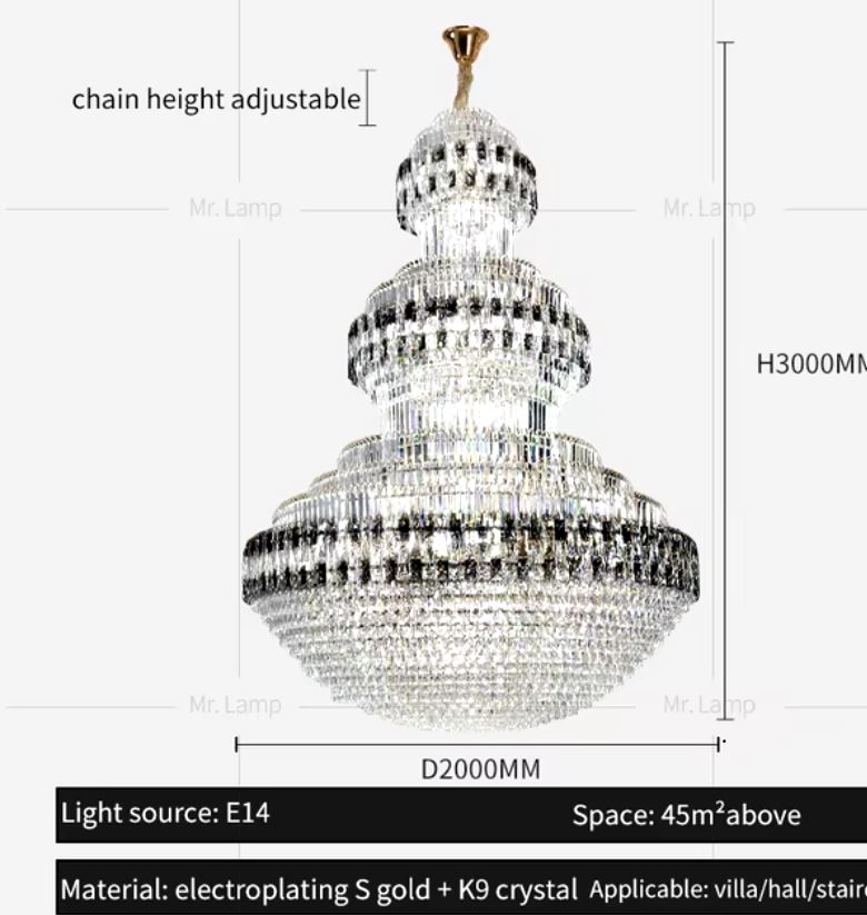 Key Features of the 3 Steps Luxury Loft Duplex Crystal Chandelier