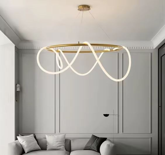 Buy the Infinity Loop LED Ring Chandelier from Light Trybe Nigeria. This beautifully designed chandelier features a flowing loop design suspended from nearly invisible cables, creating a floating, sculptural centerpiece.