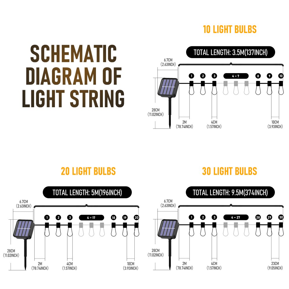 5m 20 bulbs, 9.5m 30 bulbs