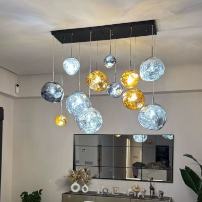 - Cascading Glass Effect – The arrangement of glass pieces creates a dynamic, flowing look that catches the eye.