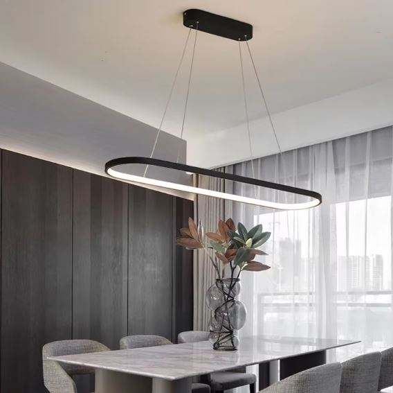 The Minimalist Adjustable Oval Pendant Chandelier by Light Trybe Nigeria is a stylish, modern lighting option. Its clean design and adjustable focus make it perfect for any space, such as living rooms, studios, kitchen islands, or dining areas.