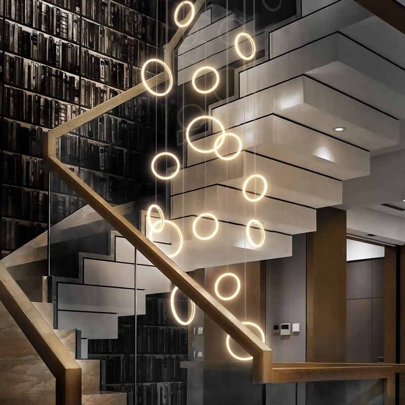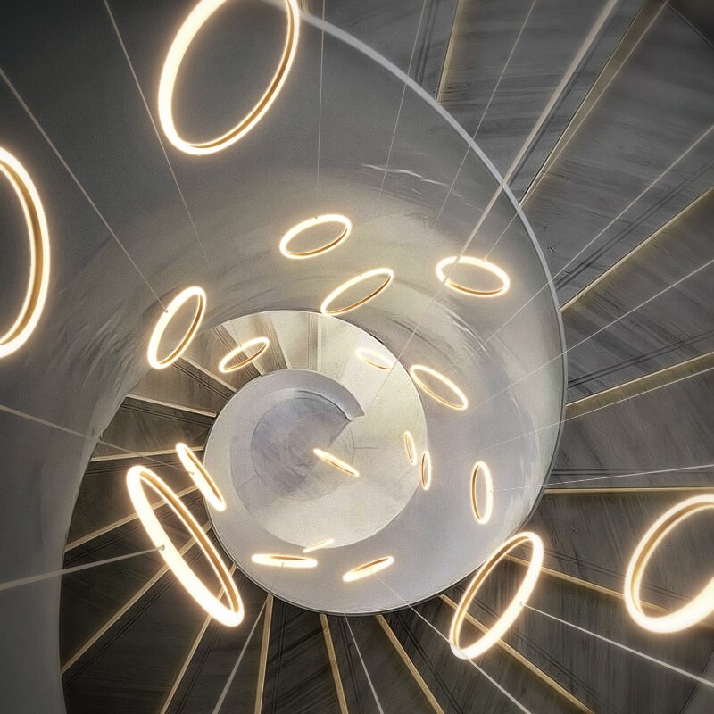 Modern Acrylic Ring Chandelier for stairwell and high ceiling