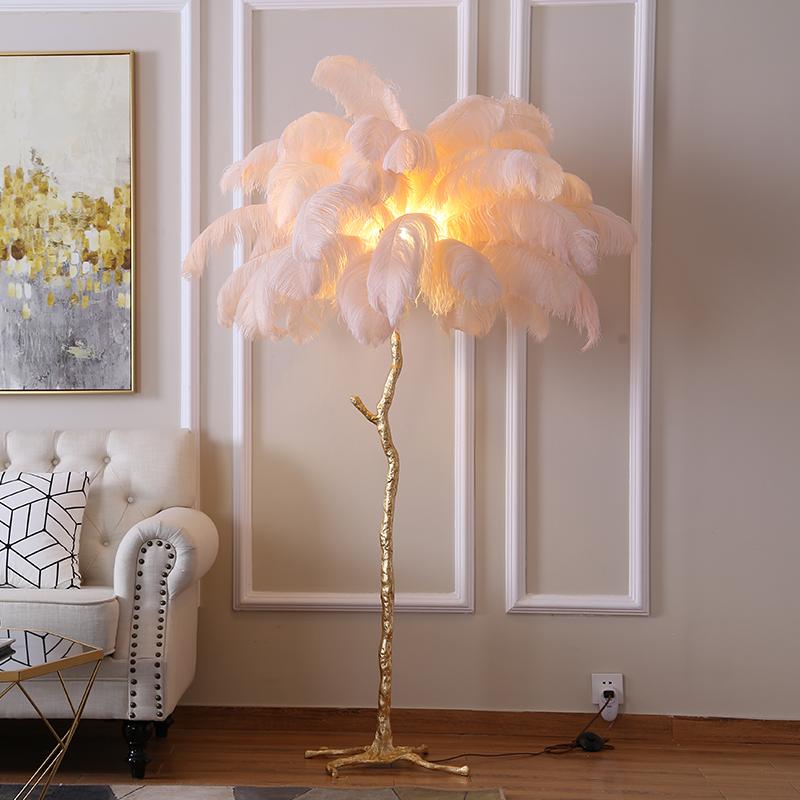 Luxurious, beautiful, and earthy feather floor lamp for living areas.